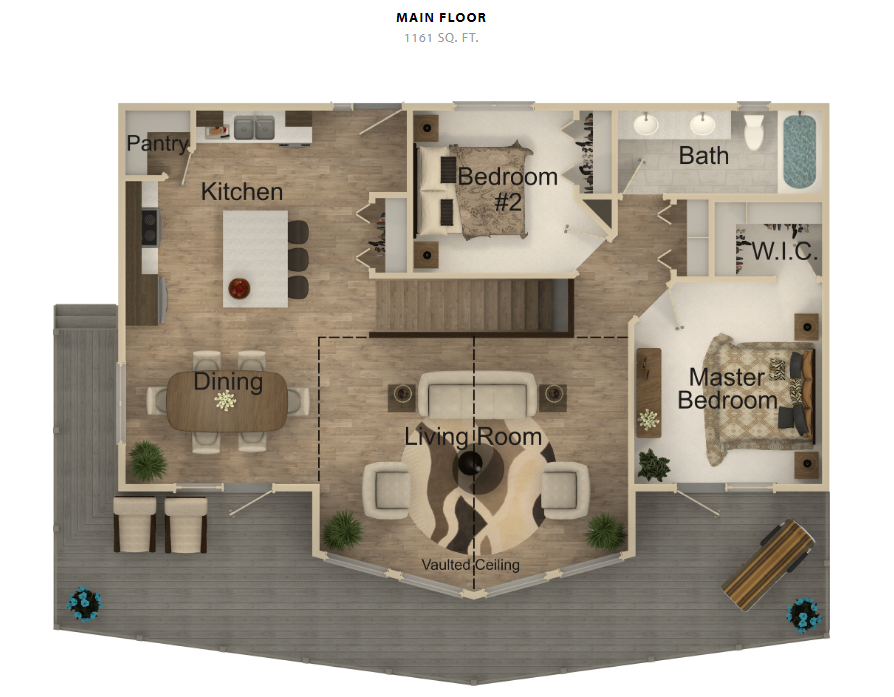 One of the standout features of the **Everest Cottage** is the **vaulted ceiling** in the living room, which creates an open and airy atmosphere, ideal for enjoying breathtaking views from your lot. With ample storage throughout, this home is designed for both comfort and functionality, making it the perfect sanctuary for families or individuals looking for a tranquil escape.