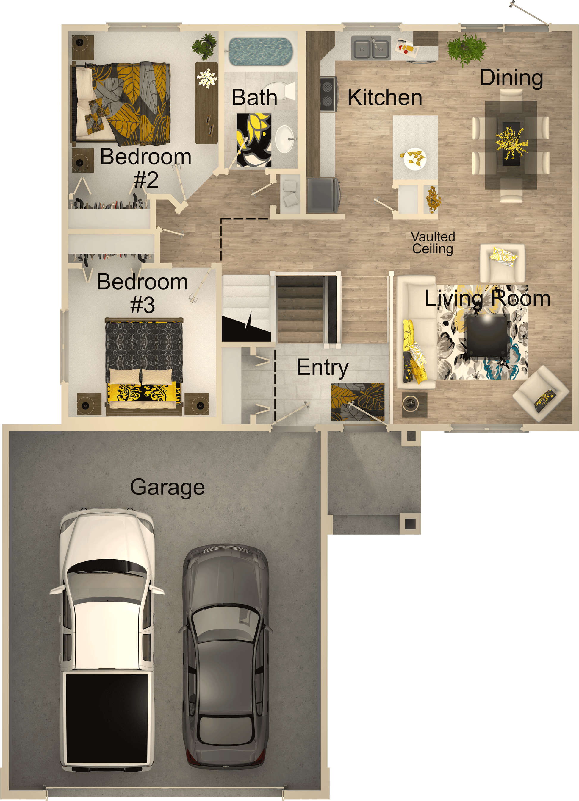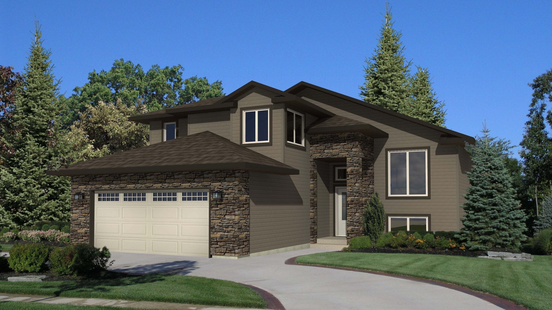 The **River Ridge** comes with an **attached 2-car garage**, providing convenient access and ample storage for your vehicles and outdoor gear. The bi-level layout allows for distinct living areas, creating a perfect blend of private and communal spaces for family gatherings or entertaining friends.