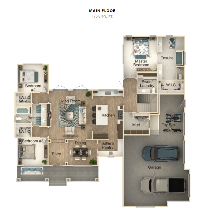 Introducing the **Sandy Shores**, a beautifully crafted **bungalow** offering a spacious **3-bedroom** and **2.5-bath** layout within **2,123 sq. ft.** This inviting home features an attached **2-car garage**, providing ample space for vehicles and additional storage, making it perfect for families or those who enjoy having room to grow.